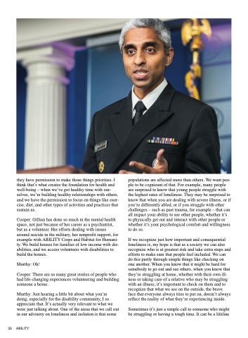 Murthy: Just hearing a little bit about what you’re doing, especially for the disability community, I so appreciate that. It’s actually very relevant to what we were just talking about. One of the areas that we call out in our advisory on loneliness and isolation is that some