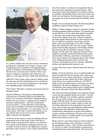 ABILITY's Chet Cooper spoke with Sen. Markey about the numerous policies and legislation he has worked on over the years, as well as the significance of the legisla- tion regarding people with disabilities.