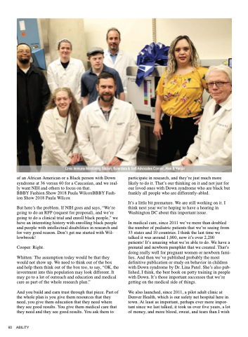 participate in research, and they’re just much more likely to do it. That’s our thinking on it and not just for our loved ones with Down syndrome who are black but frankly all people who are differently-abled.