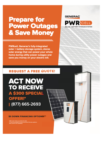 PWRcell, Generac’s fully-integrated solar + battery storage system, stores solar energy that can power your whole home during utility power outages and save you money on your electric bill.