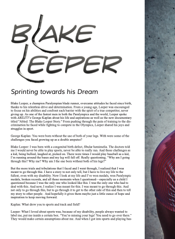 Blake Leeper, a champion Paralympian blade runner, overcame attitudes he faced since birth, thanks to his relentless drive and determination. From a young age, Leeper was encouraged to focus on his abilities and confront each barrier with the spirit of a true competitor, never giving up. As one of the fastest men in both the Paralympics and the world, Leeper spoke with ABILITY’s George Kaplan about his life and aspirations as well as the new documentary titled "Abled: The Blake Leeper Story." From pushing through the pain of training to the dis- crimination he faced while fighting to compete in the Olympics, Leeper shared his joys and struggles in sport.
