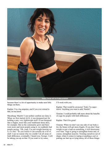 Grazian: I could probably talk more about the benefits of yoga for people with limb differences.