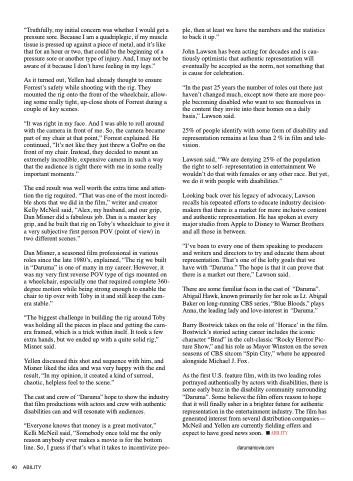 “In the past 25 years the number of roles out there just haven’t changed much, except now there are more peo- ple becoming disabled who want to see themselves in the content they invite into their homes on a daily basis,” Lawson said.