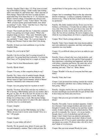 Cooper: Isn’t it something? Back in the day when the doctors would say—a tobacco company would use a doctor to say, “They’re the best, Camel is the best doc- tor-preferred.”