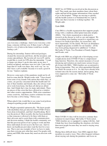 However, some parts of this pandemic might not be all bad for some that Dr. Wright works with. “I have heard from some of my friends with autism that while they, of course, are gravely concerned about the health and wel- fare of their families and friends, they also always want- ed to work from home, but their job did never afford that. And I think that’s true for many individuals. There are pieces of this crisis that have allowed us a window into other creative opportunities. With crisis sometimes comes creativity. And these creative solutions for some have become a silver lining,” Patrica says.