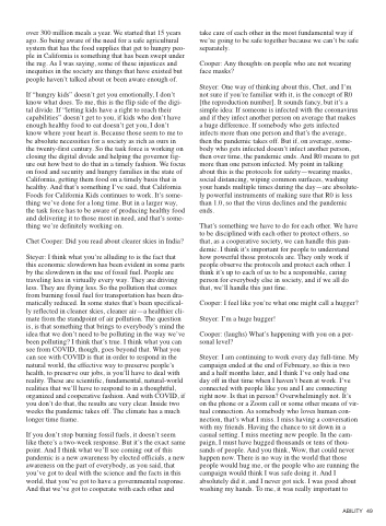 over 300 million meals a year. We started that 15 years ago. So being aware of the need for a safe agricultural system that has the food supplies that get to hungry peo- ple in California is something that has been swept under the rug. As I was saying, some of these injustices and inequities in the society are things that have existed but people haven’t talked about or been aware enough of.